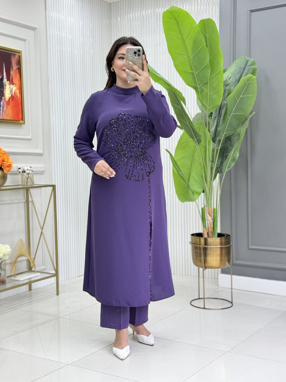 Krep kumaştır, pres taşlıdır.
